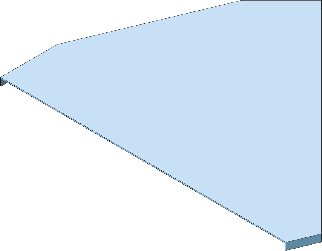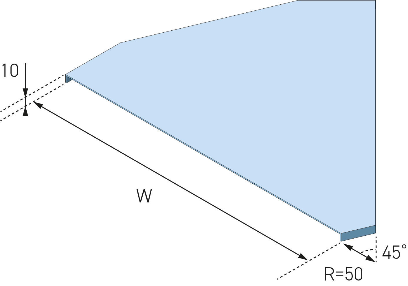 Deksel Bocht 45° voor kabelgoot breed 100, W (breedte)=103mm,E (dikte)=1,0mm, 45°, koolstofstaal, sendzimir verzinkt volgens NEN-EN 10346, zonder dekselklemmen.