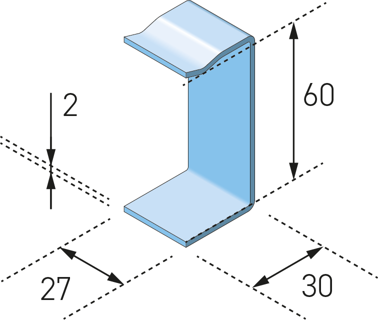 Dekselklem Klikbaar voor Kabelgoot ECT60 met maatvoering Geschikt voor kabelgoot ECT60, H=65mm, E (dikte)=2,0mm, koolstofstaal, thermisch verzinkt volgens NEN-EN-ISO 1461, minimale laagdikte 90 µm.