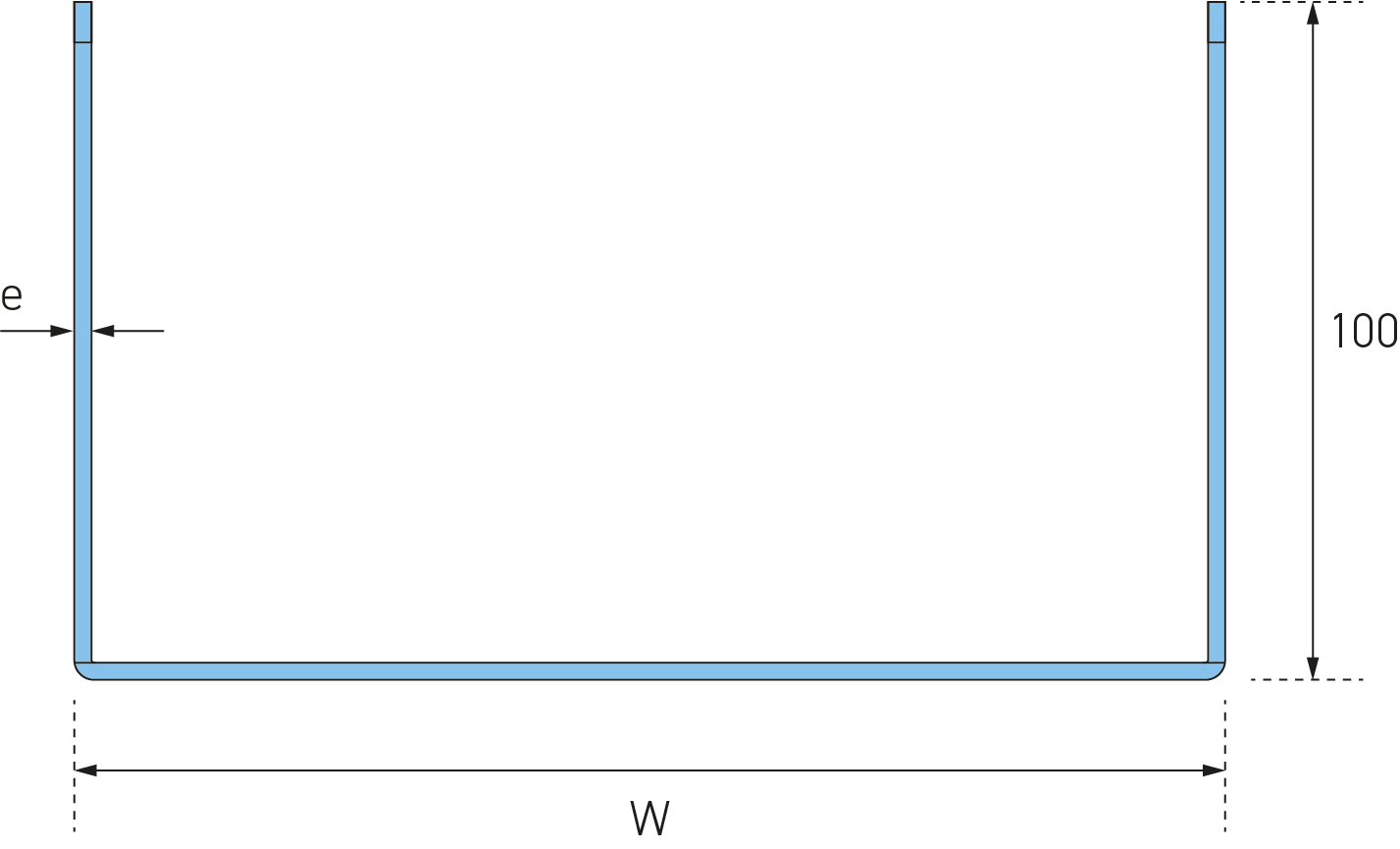 Bend 90° Cable Tray ECT100 100x300 RVS304 with sizes H=100mm, B=300mm, T=1,0mm, 90°, stainless steel 304, including 16x EFS08x15-304 Eurostrut fixing set (bolt M08x15, nut and washer).