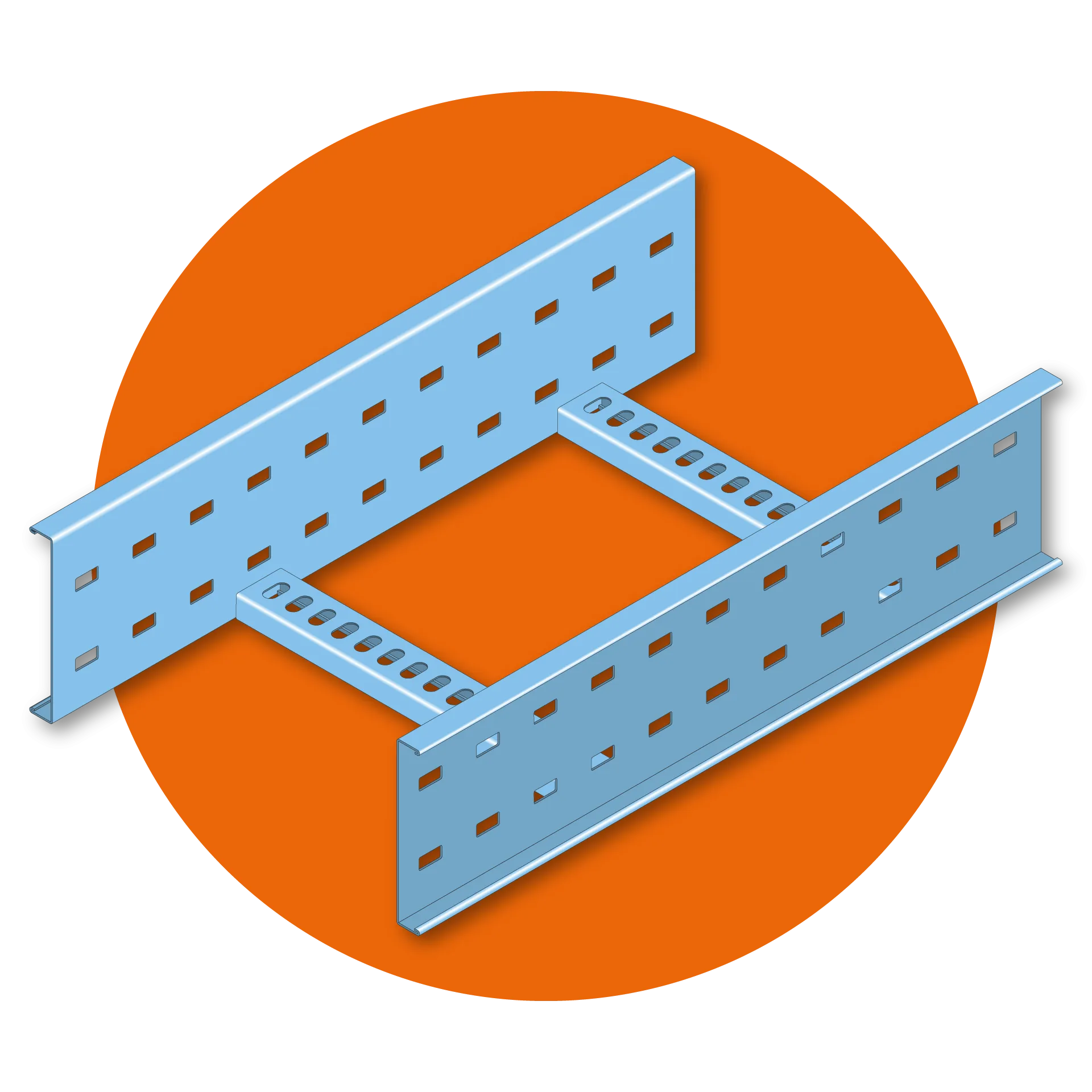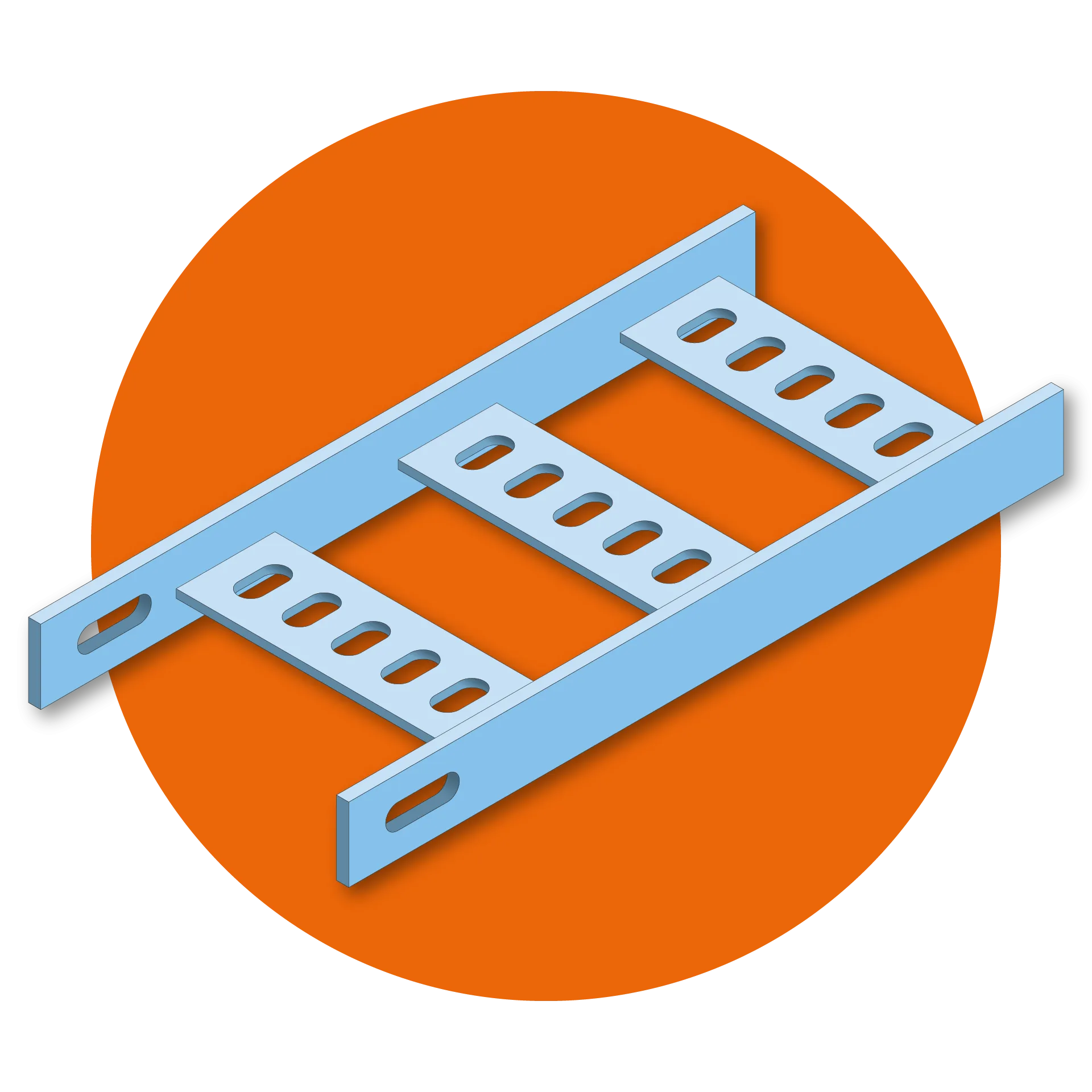 - Ladder tracks: Robust systems suitable for heavy cables and long spans, often used in the (chemical) industry and energy supply. Depending on the finish, suitable for indoor and outdoor use in (heavy) corrosive environments.