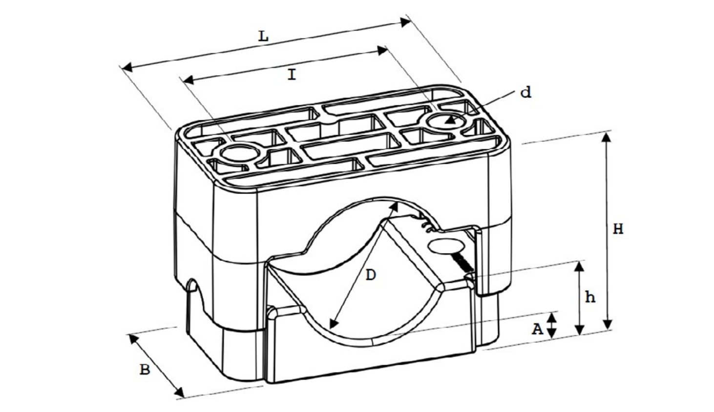Design: The ST clamp consists of two parts: a lower shell and an upper shell. They are designed to allow easy cable installation. Thanks to the unique design, the clamps meet the highest possible requirements and are therefore highly suitable for applications where high resistance to short-circuit forces is required. The ST clamps feature two mounting holes for threaded rods or tap bolts. In addition, the upper shell has integrated chambers that retain the nuts, eliminating the need for separate fastening of the lower shell.