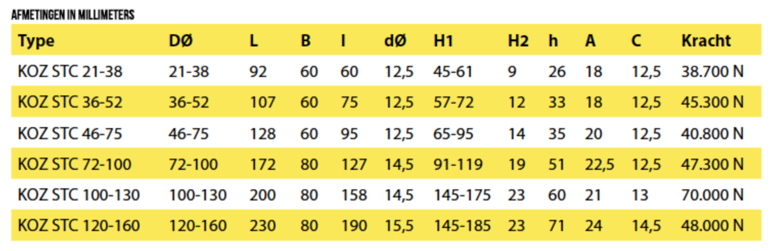 Application: The STC clamp is designed for securing single- and multi-core low-, medium- and high-voltage cables with an outer diameter ranging from 21 mm to 160 mm.