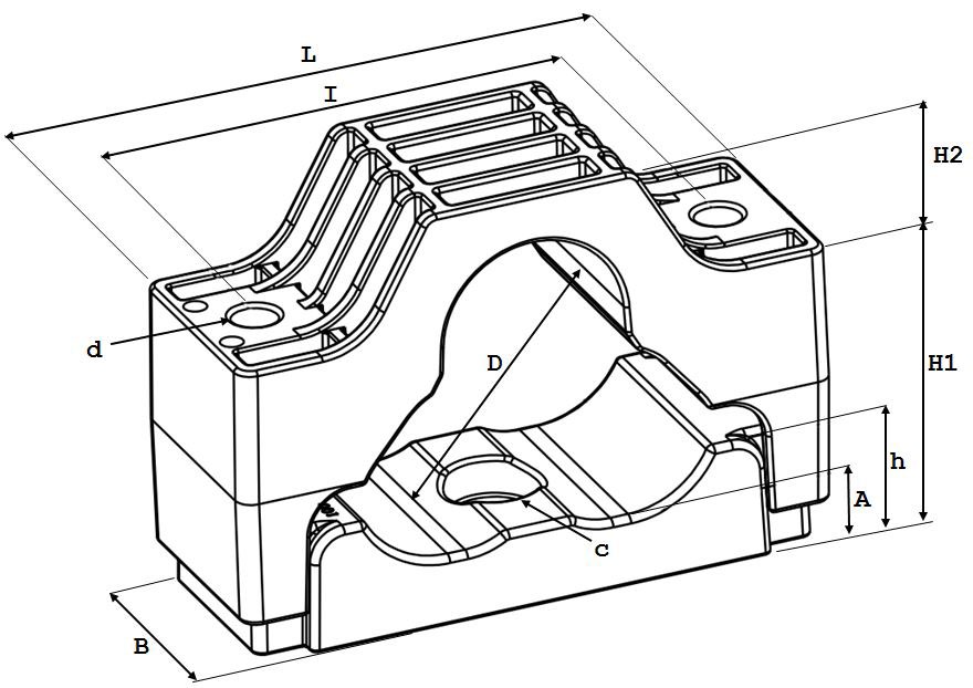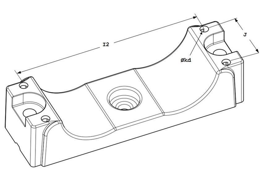 Design: The TRI clamp consists of a lower shell and an upper shell and is designed for mounting three cables in a triangular formation. The TRI clamp features two mounting holes for threaded rods or tap bolts. Both the upper and lower shells are equipped with integrated chambers, allowing the nuts at the bottom as well as in the center to be neatly retained within the clamp. In addition, the lower shell is provided with a central mounting hole, offering even more installation options.