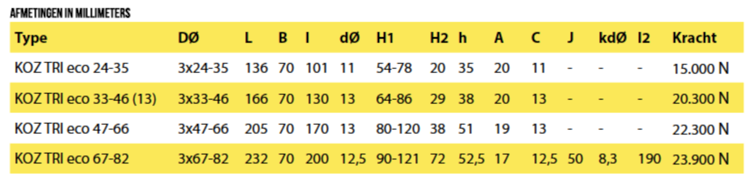 KOZ Trefoil TRI ECO 47-66 Cable Clamp K029