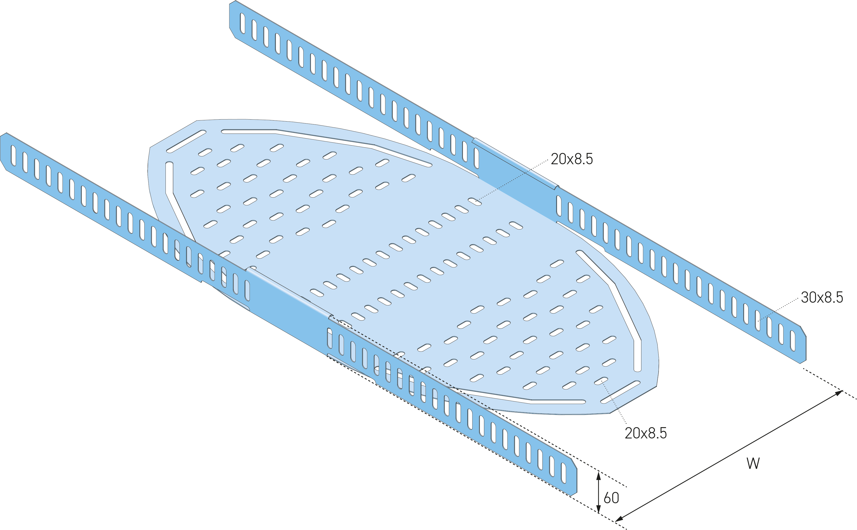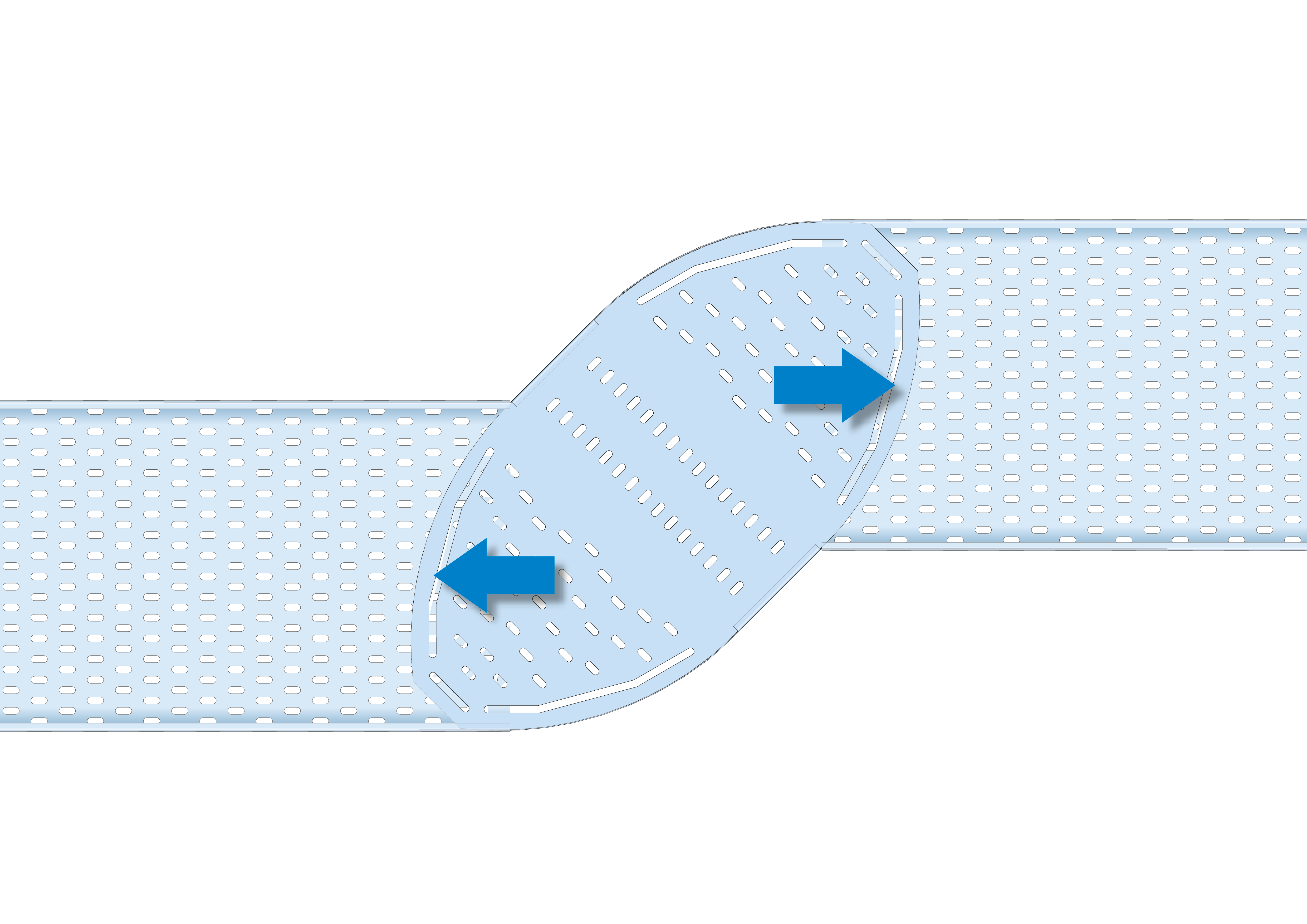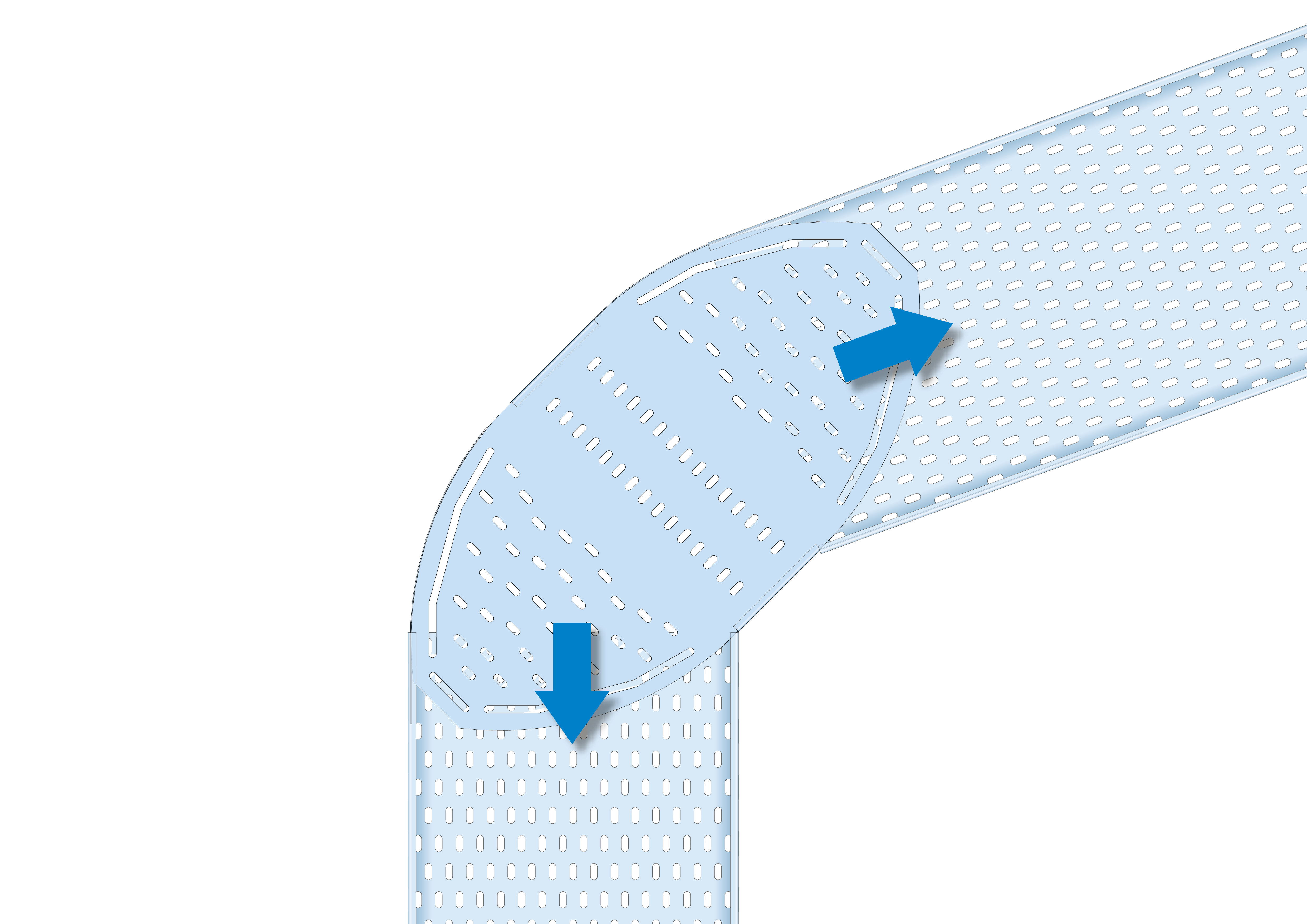 Flexibele Bocht voor Kabelgoot ECT60 met maatvoering H=60mm, B=75mm, D=1,0mm, flexibel, koolstofstaal, thermisch verzinkt volgens NEN-EN-ISO 1461, inclusief 8x EFS08x15-GEO Eurostrut bevestigingsset (slotbout M8x15, moer en sluitring).