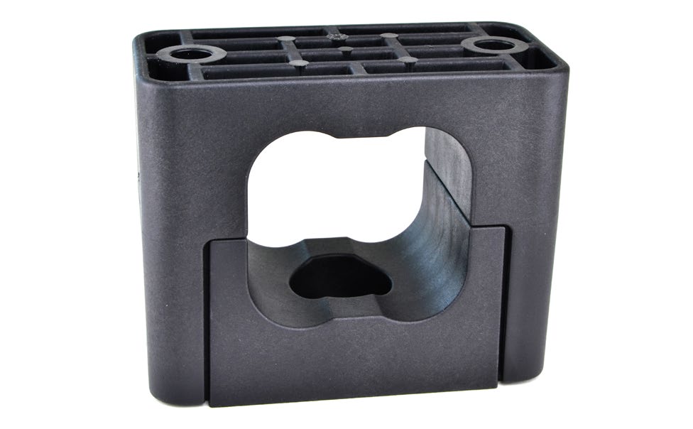 Ontwerp: De SQ klem bestaat uit een onderschaal en een bovenschaal en is ontworpen voor een eenvoudige montage van vier kabels. De SQ klem is voorzien van twee bevestigingsgaten voor draadeinden of tapbouten. Daarnaast beschikt de onderschaal over een centraal middengat, wat extra installatiemogelijkheden biedt.