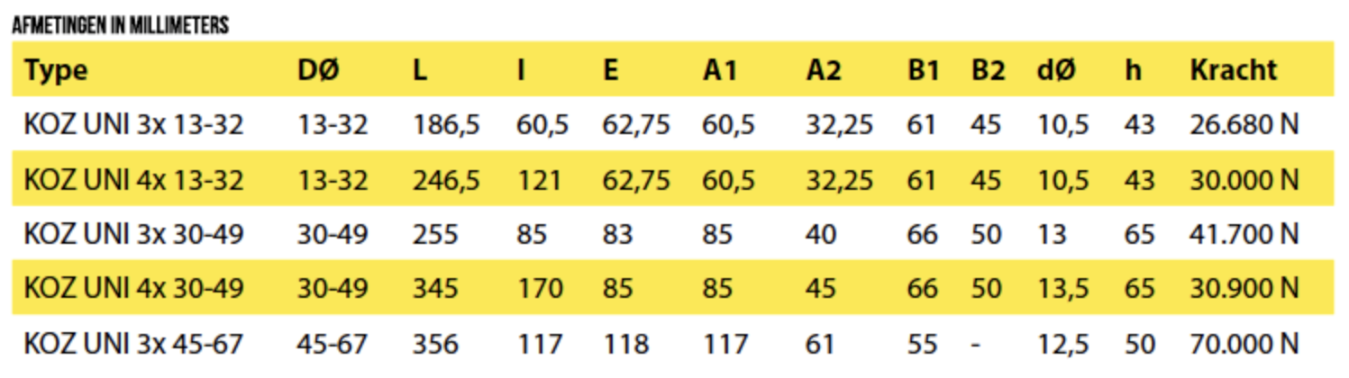 | Geschikt voor buisdiameter : | 45 - 67 mm |