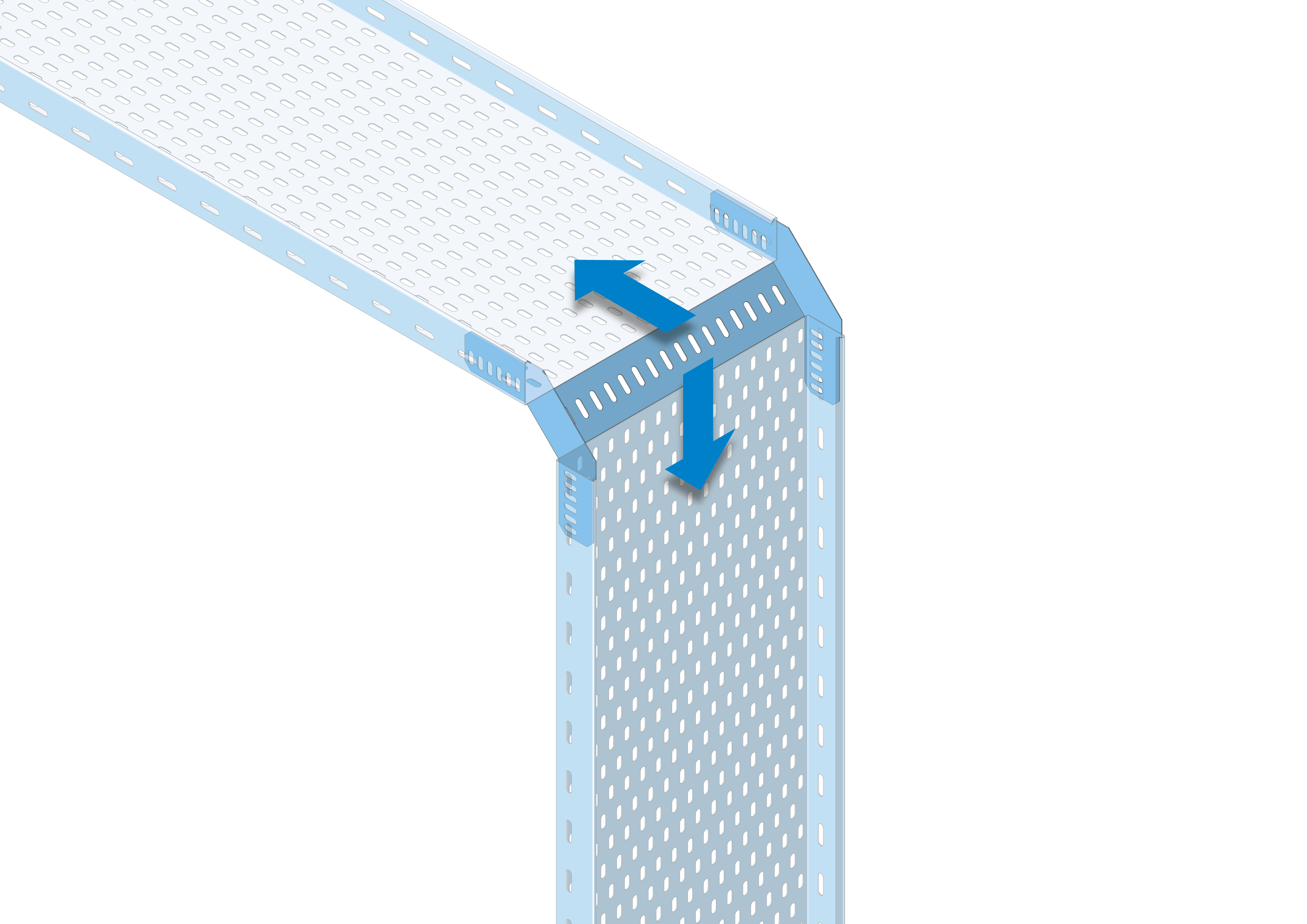 Valstuk 90° voor Kabelgoot ECT60 met maatvoering H=60mm, B=600mm, D=1,5mm, 90°, roestvrijstaal 316, inclusief 8x EFS08x15-316 Eurostrut bevestigingsset (slotbout M08x15, moer en sluitring).